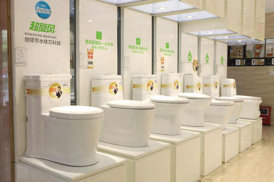 黄瓜视频污下载网站超旋风马桶,是专卖店导购员着重介绍的几款卫浴产品之一。它搭载了国家水利部认证的导流导压节水技术,单次冲水可节水40%,并开创了节水马桶行业的3.5L时代。很多参与第八届中国卫浴节的消费者,对这款能节水40%的马桶产生了兴趣,围在导购员身边认真听其讲解核心技术和结构设计。