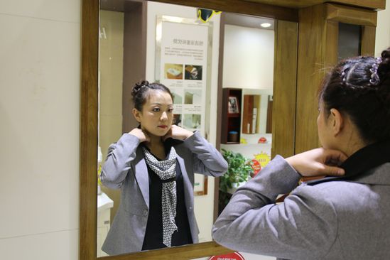 洗漱完毕后,就换上工作服,画好淡妆,搭配丝巾,仔细整理好仪容,这是黄店长每天出门前的必备工作。