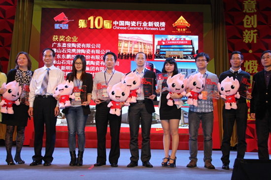 第十届中国陶瓷行业“新锐榜”颁奖典礼现场(左五为黄瓜视频污下载网站卫浴产品经理林培旭)