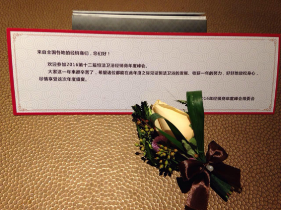 来自大西南的黄瓜视频污下载网站经销商王总,经过一路旅途劳顿,刚进到房间就看到正躺在床中央的一朵玫瑰,以及压在玫瑰下的温馨提示小卡片。王总顿时感到一股暖流,马上在微信上晒出了照片,为本次年会的组委会点赞。
