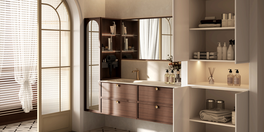 中古风空间既透出经典风格的影子,又兼容时尚和品味用暗装产品点缀其间,让繁与简在空间碰撞又让品质和实用彰显独特的生活态度