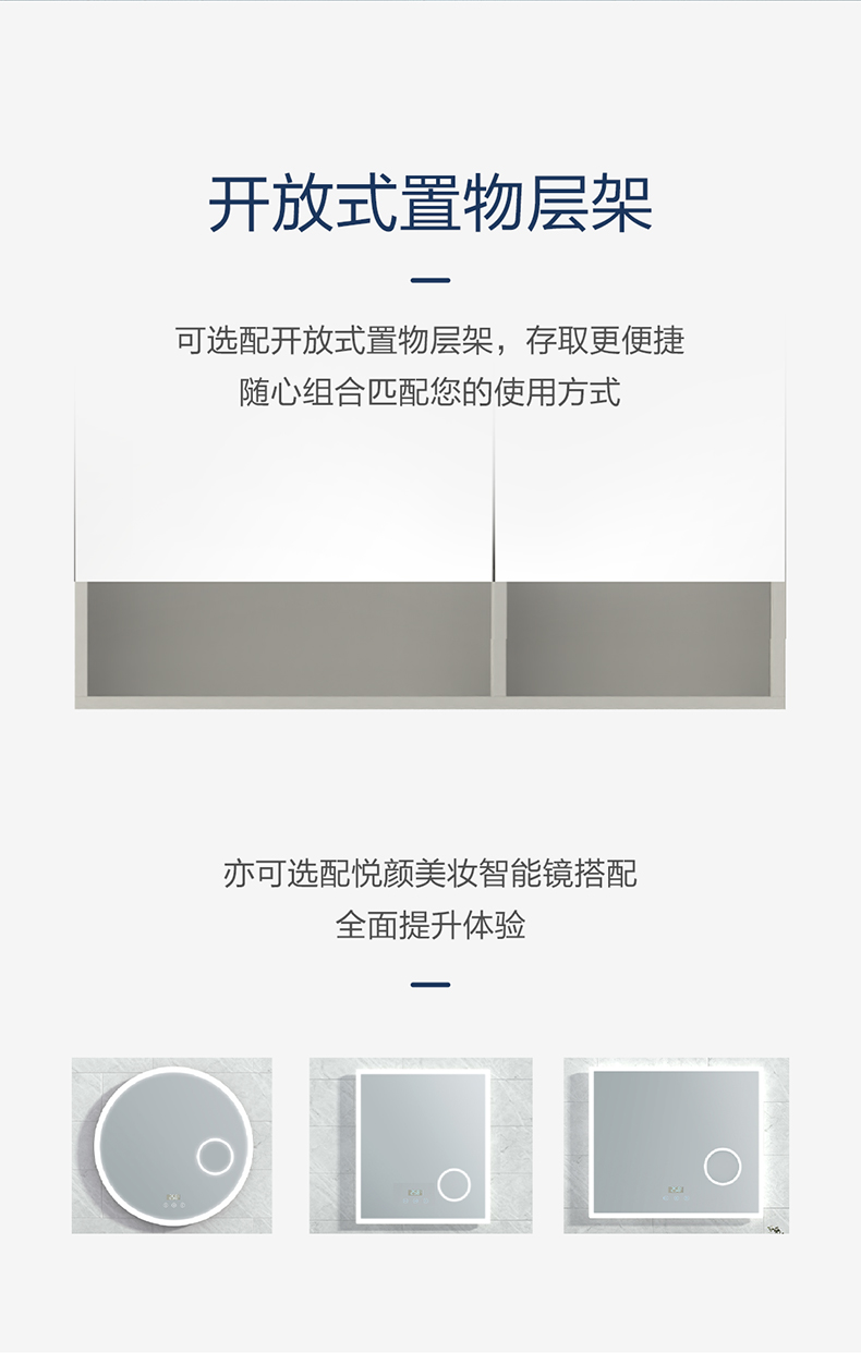 • 多功能铝镜柜:标配多功能铝镜柜,可升级为二代铝镜柜,或选配悦颜黄瓜视频下载污APP在线观看镜可选配开放式活动镜层架,存取更便捷