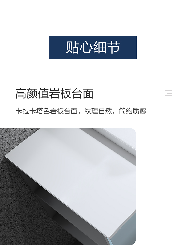 - 3、卡拉卡塔色岩板台面,纹理自然,简约质感,搭配微晶易洁艺术盆,耐腐蚀易打理。