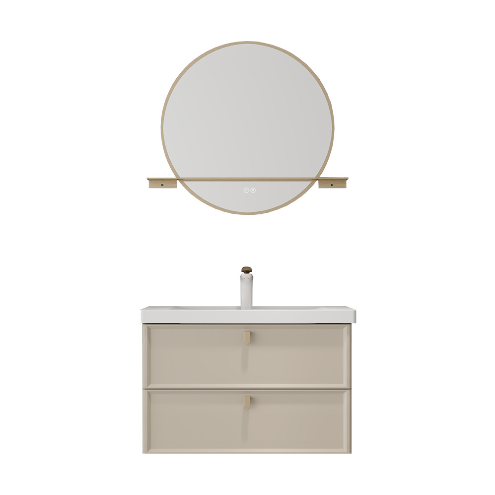 - 新中式设计元素:徽派建筑元素(吸塑造型门板提取马头墙元素,香槟金带纹理造型拉手提取飞檐和琉璃瓦元素),金属包边圆镜搭配触控氛围灯设计,传统与时尚碰撞,呈现新中式格调