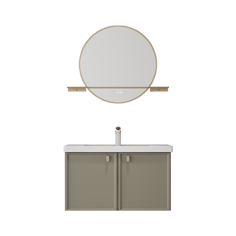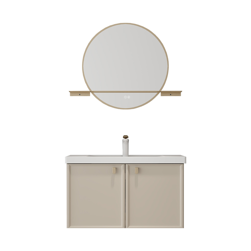 - 新中式设计元素:徽派建筑元素(吸塑造型门板提取马头墙元素,香槟金带纹理造型拉手提取飞檐和琉璃瓦元素),金属包边圆镜搭配触控氛围灯设计,传统与时尚碰撞,呈现新中式格调