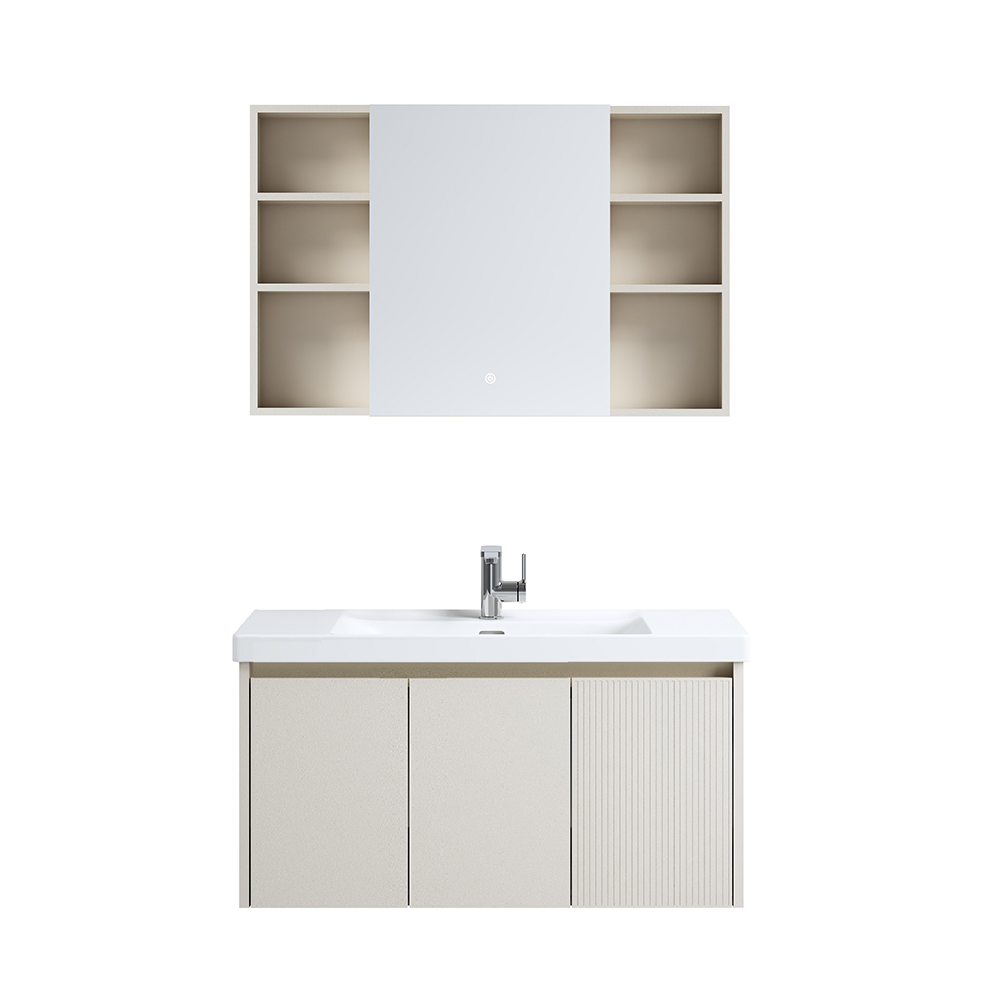 • 合理收纳分区:双开门主柜,方便大件物品收纳;镜柜内部高低分层(168/174/244/301mm)满足不同高度物品放置;底层左侧带抽纸孔设计,左手抽取纸巾,右手拿取常用高频使用物品,合理设计使用动线