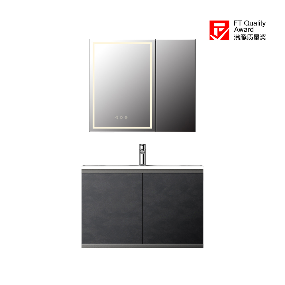 • 浅咖色+雀羽枫/斑影黑石+深灰龙羽两种配色方案,镜柜、台面、主柜可选定制。