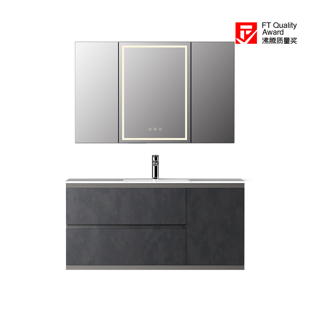 • 浅咖色+雀羽枫/斑影黑石+深灰龙羽两种配色方案,镜柜、台面、主柜可选定制。