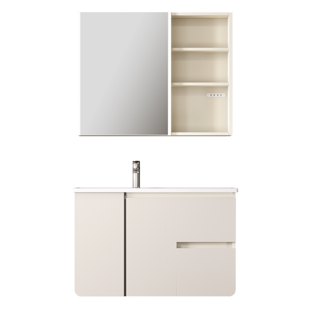 - 2、万象收纳:镜柜美妆镜背收纳、科学分区设计、抽纸孔设计防水防潮,柜内取电插座更便捷;左侧开门设计大件囤货,右侧双抽设计,美妆拿取更便捷,免避让更高效;
