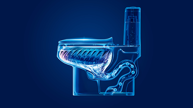 专利导流导压设计,平时圈内蓄水待发,按下冲洗阀时,不用等待水流填充,可瞬间完成从高位势能冲洗孔的水压传导和增强,水能量完全释放,强劲冲力。