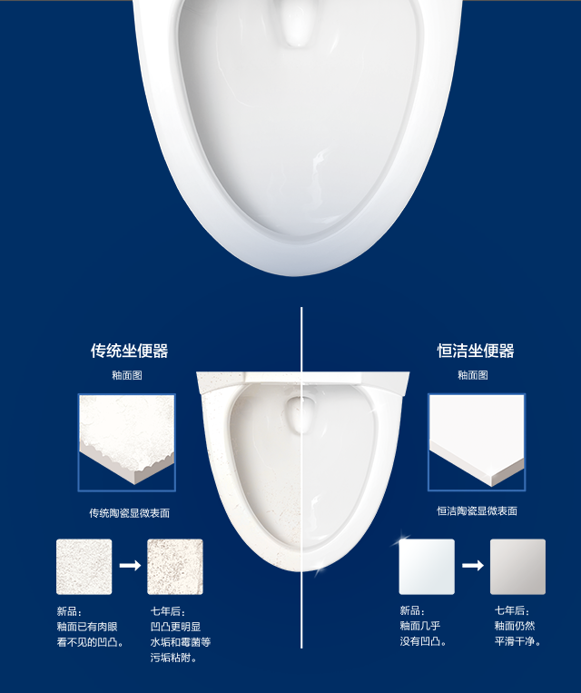 由于表面涂层使用特殊釉药,应用微晶抗污釉面技术的坐便器更耐慢蚀。